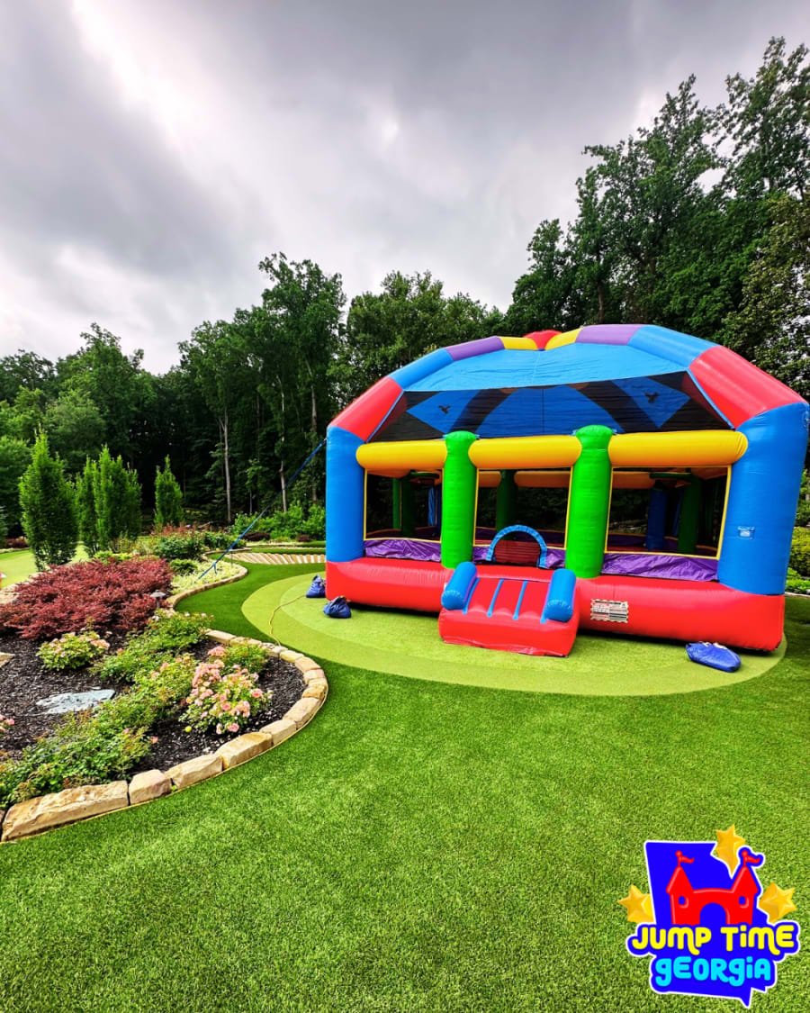 Spanning an expansive 20' x 20' bounce area, this extra large bounce house is designed to accommodate both kids and adults. With its massive size, there's no shortage of room for jumping, bouncing, and playing. Constructed from high-quality, commercial-grade PVC vinyl, the Georgia Dome Bounce House XL is built to endure countless hours of energetic fun. It's your go-to solution for memorable events both indoors and outdoors, ensuring your celebration is a hit—come rain or shine! đ