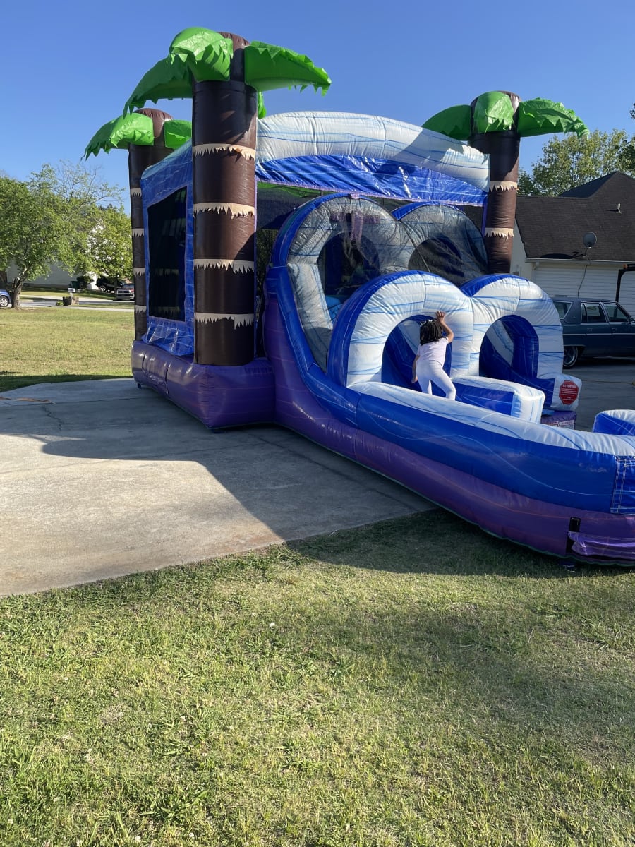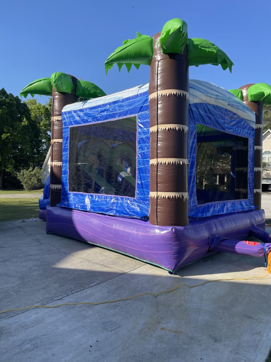 Add laid-back tropical fun to your event with the Tropic Island Combo, a versatile bounce house and slide combo designed for all types of celebrations. Featuring a neutral tropical theme, this inflatable works perfectly for birthdays, school events, church gatherings, and backyard parties.