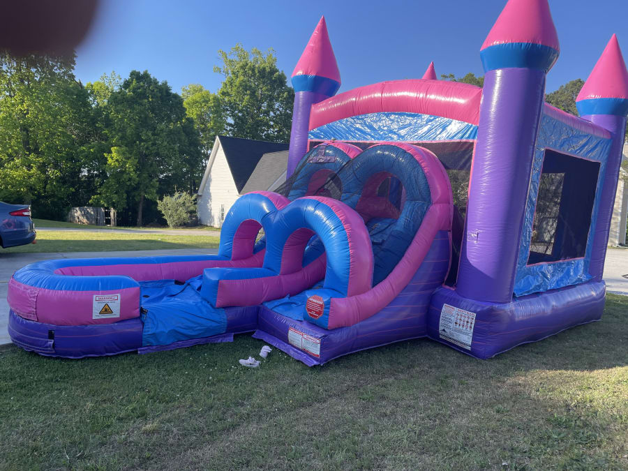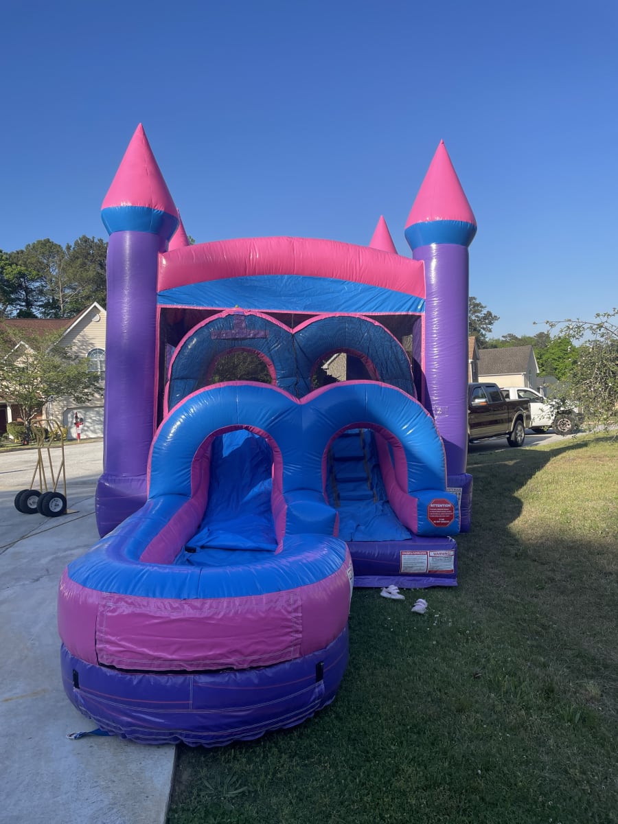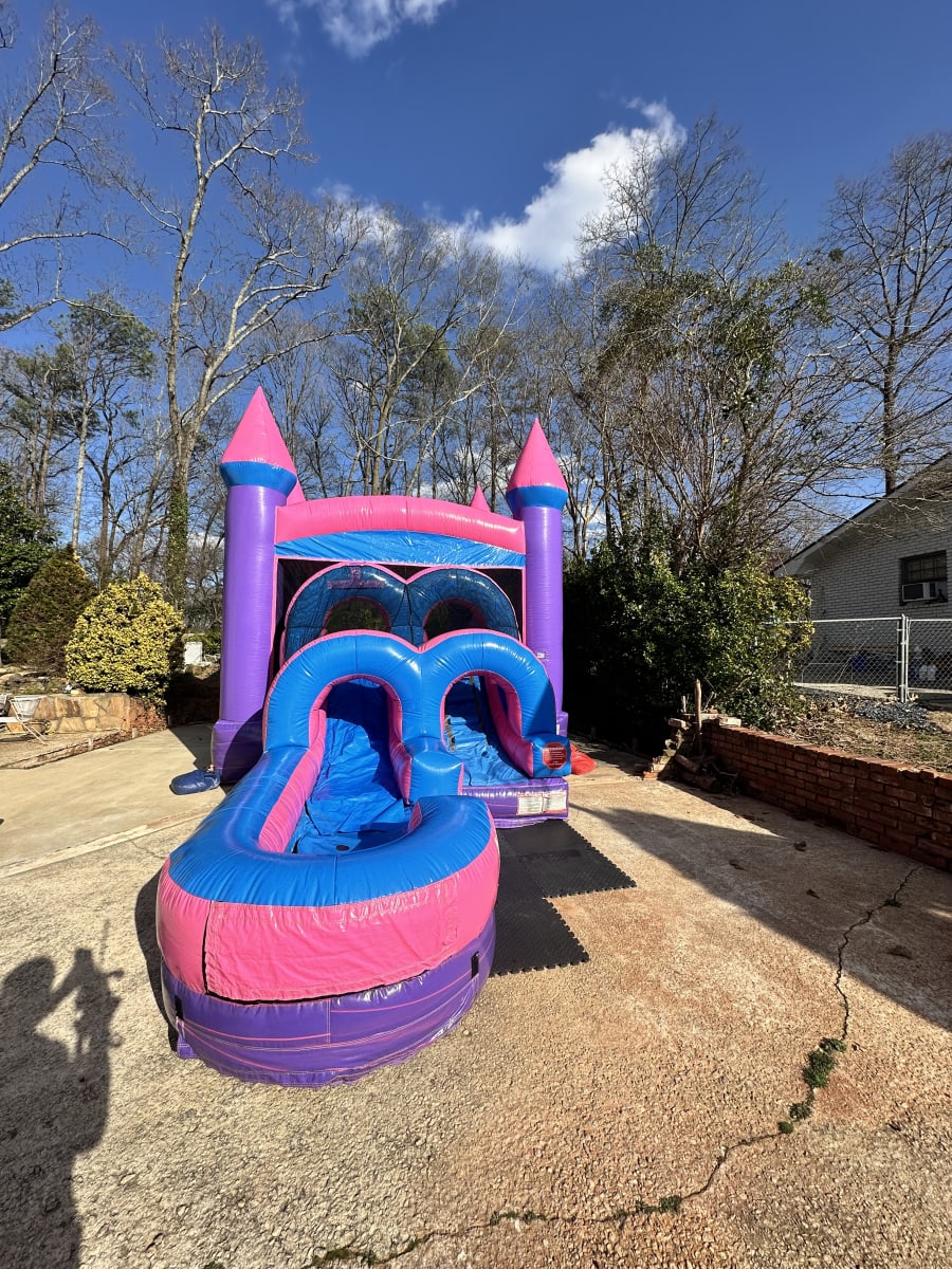 If you’re hosting an event in McDonough and want a bounce and slide combo that delivers wet-or-dry fun with a playful design, the Pink Playhouse Combo is an excellent choice.