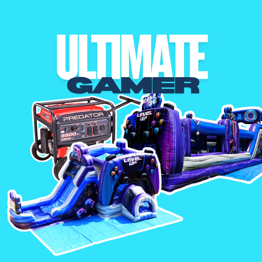 - Gamer Bounce House Slide Combo: Double the fun with a bounce house and slide combo, featuring vibrant gamer-themed graphics. Kids and adults alike will love bouncing, sliding, and playing for hours.